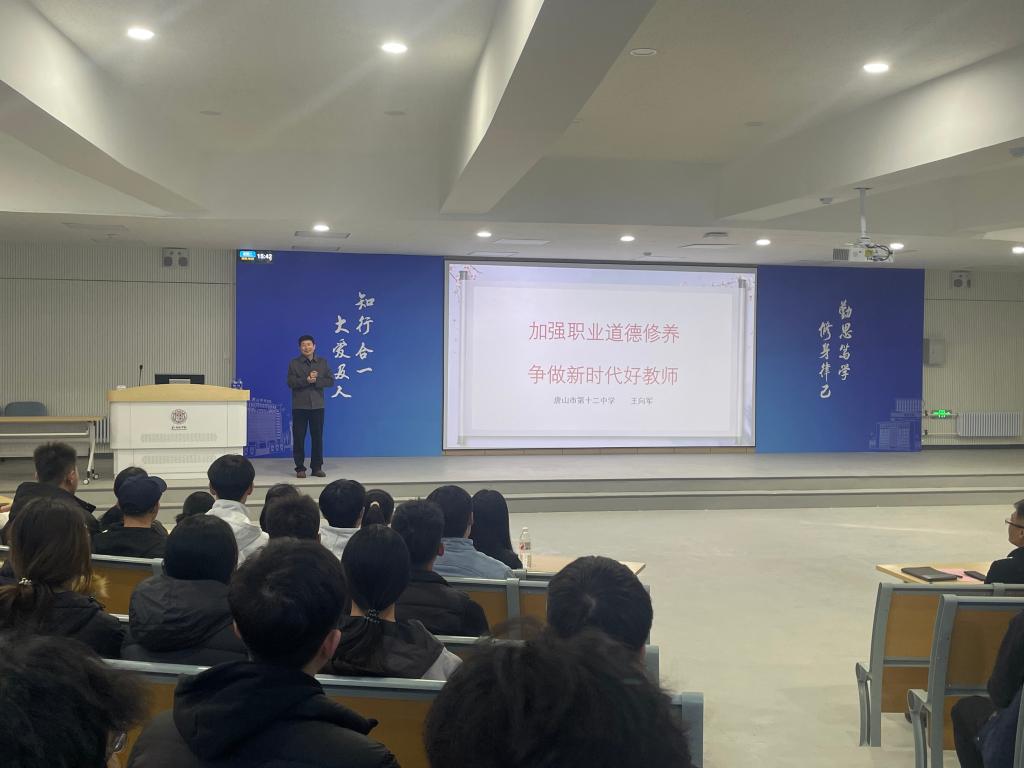 为强化师生职业道德素养,筑牢立德树人思想根基,10月21日下午,3044永利集团在南院第九阶梯教室成功举办“加强职业道德修养 争做新时代好教师”专题报告会。报告会特邀我校优秀校友、唐山市第十二中学校长王向军担任主讲,3044永利集团副主任尹海主持,200余名师生代表现场聆听。